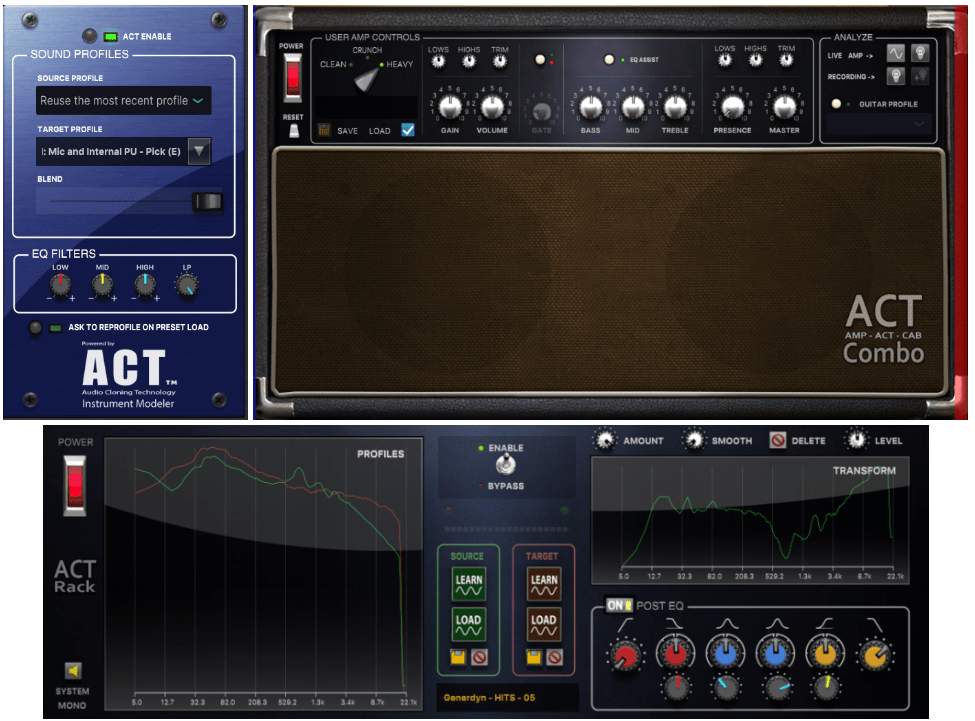 ACT is another killer feature. Short for Audio Cloning Technology, it lets you profile the sound of a real guitar or amp and transform it into a different instrument or tone. It’s like magic for tone chasers.