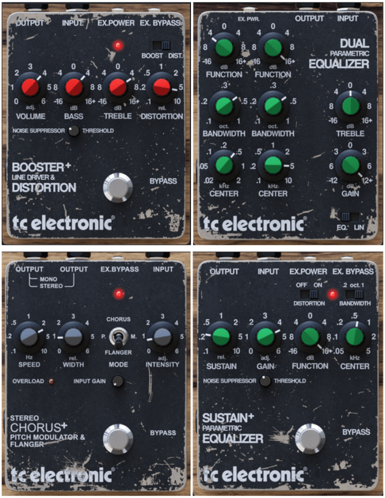 These are revamped versions of TC’s old Powercore-era Vintage Guitar Pedal bundle. Booster/Distortion comes from the discontinued VPD1 Pre-Drive pedal, and Stereo Chorus Flanger is based on the SCF pedal.