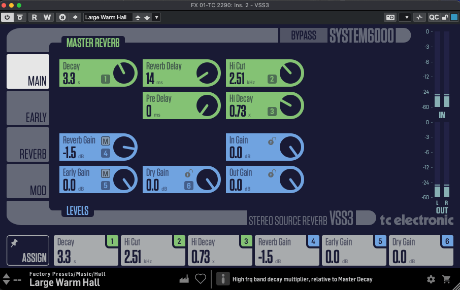 | Reverb | VSS4 HD | An upgraded System 6000 reverb algorithm—smooth and modern. |