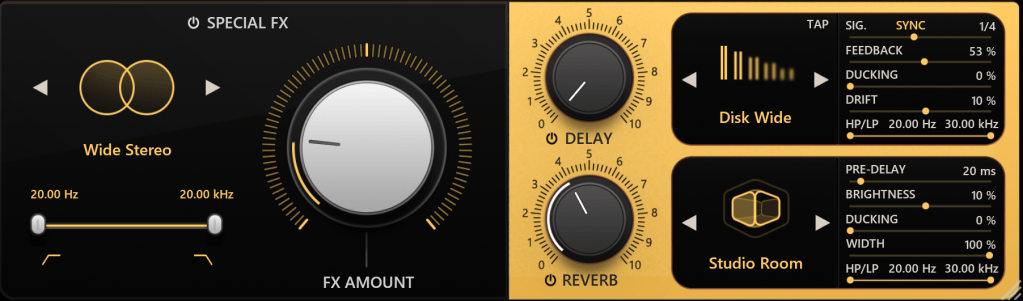 - Reverb: Offers a wide range of types—hall, plate, spring, room, chamber, ambience, you name it.