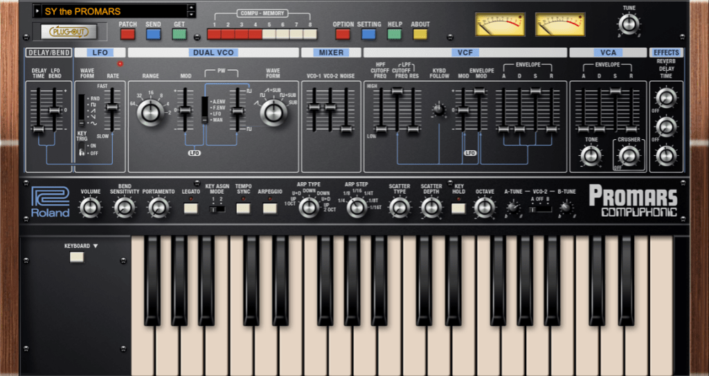 The PROMARS (1979) is a monophonic sibling of the Jupiter-4, with two VCOs for a rich, detuned sound. Think of it as a scaled-down Jupiter-4 without the arpeggiator or ensemble chorus. It’s got a thick, vibrant tone that’s perfect for bold leads or basses.