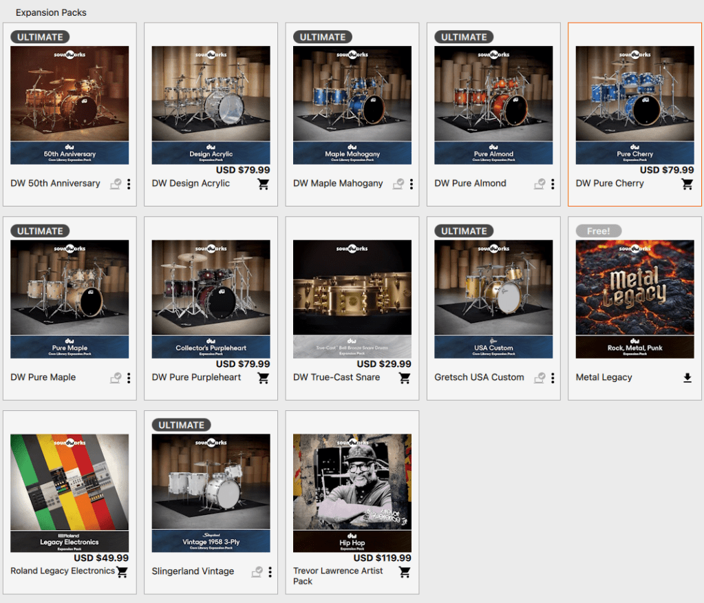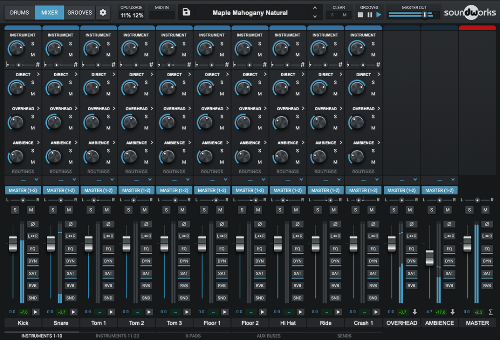 The mixer lets you control overheads, ambience, and output routing, similar to other drum VSTs. DW Soundworks comes with 13 expansion packs, including the Metal Legacy pack (7.71GB, free!).