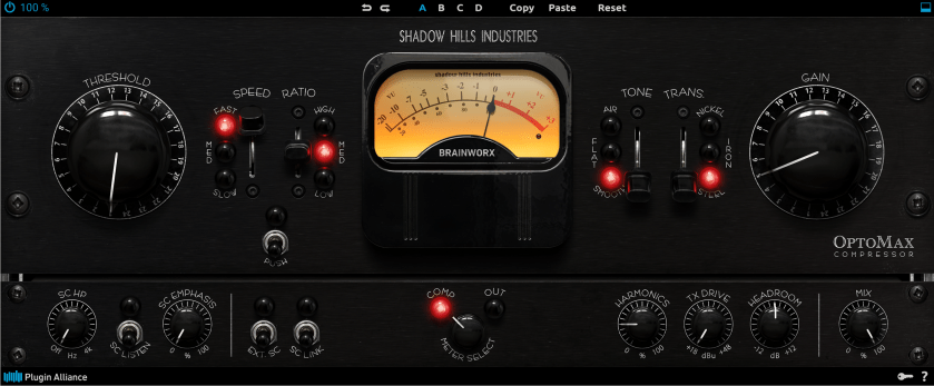 This plugin is a digital clone of the optical part of the Shadow Hills Mastering Compressor produced by Shadow Hills Industries. The hardware, OptoGraph also inspired by the optical section of the Shadow Hills Mastering Compressor. But those two products are not exactly the same.