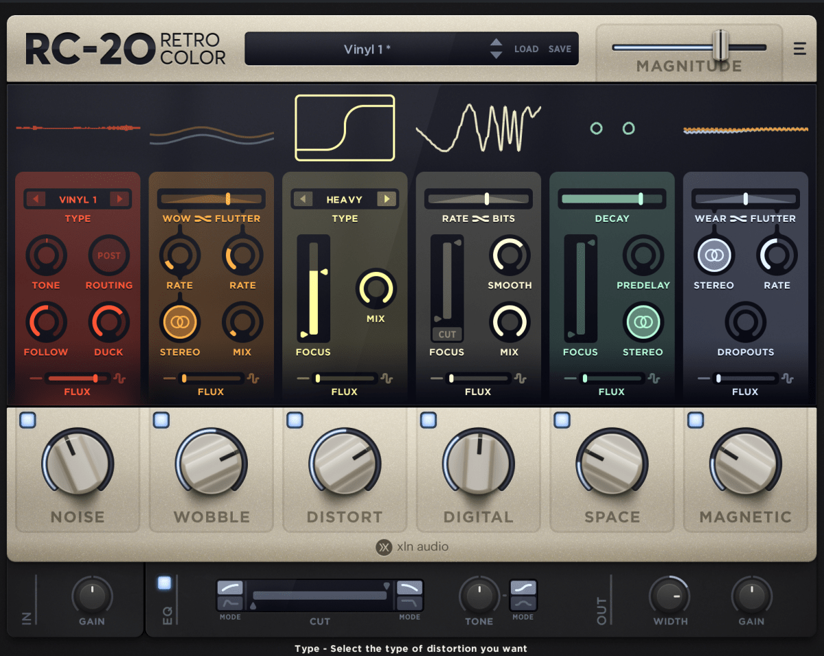 To manage the overall vintage intensity, simply use the Magnitude fader, which controls total amount of the effects.