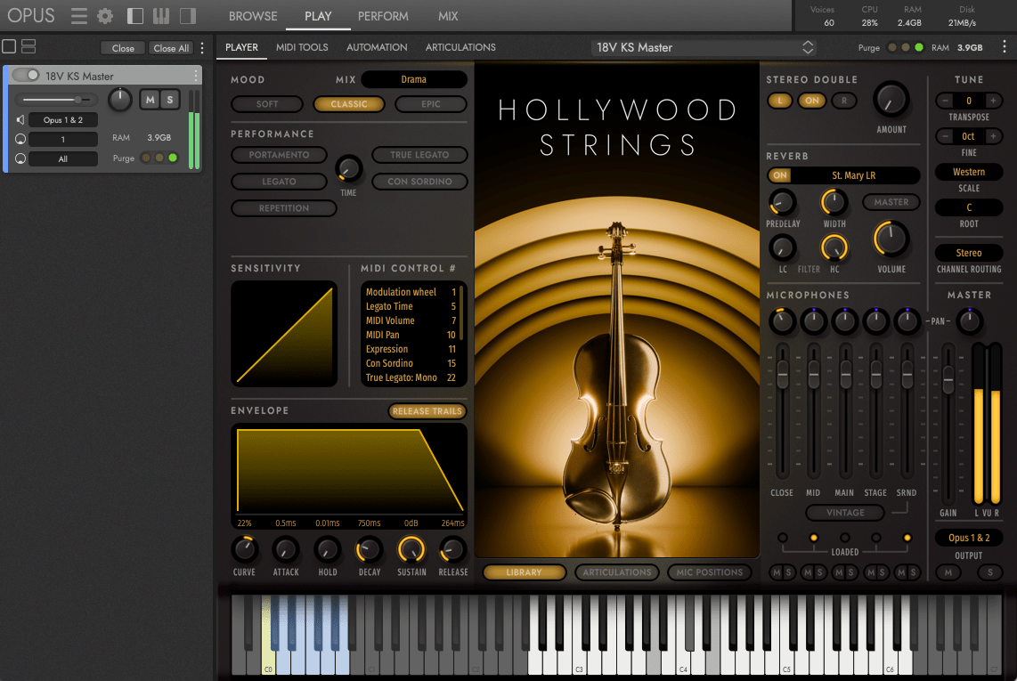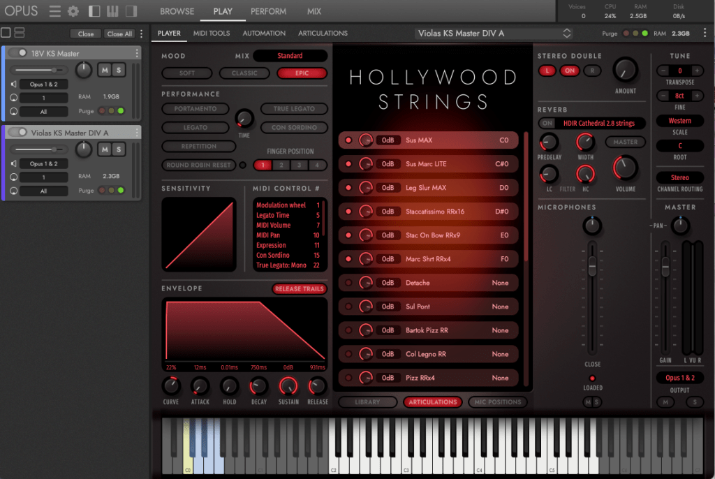 In the past, EastWest Sounds offered the ‘Hollywood Orchestra’ series in Diamond, Gold, and Silver editions. Today, these divisions have been phased out and unified into a single, comprehensive version: OPUS (OPUS is the name of the playback engine).