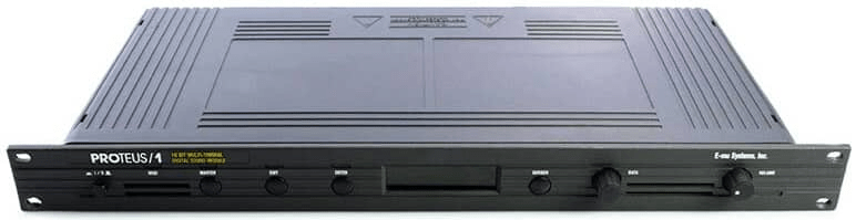 The E-mu Proteus series were also famous PCM-style synthesizers in the late 1980s. Unlike the Korg M1, they were rack-mount module swithout a keyboard. they were designed to provide high-quality samples at a lower price point, making them standards in many project studios. Their presets were widely used in film and television scores, including the iconic whistling sound in The X-Files theme.