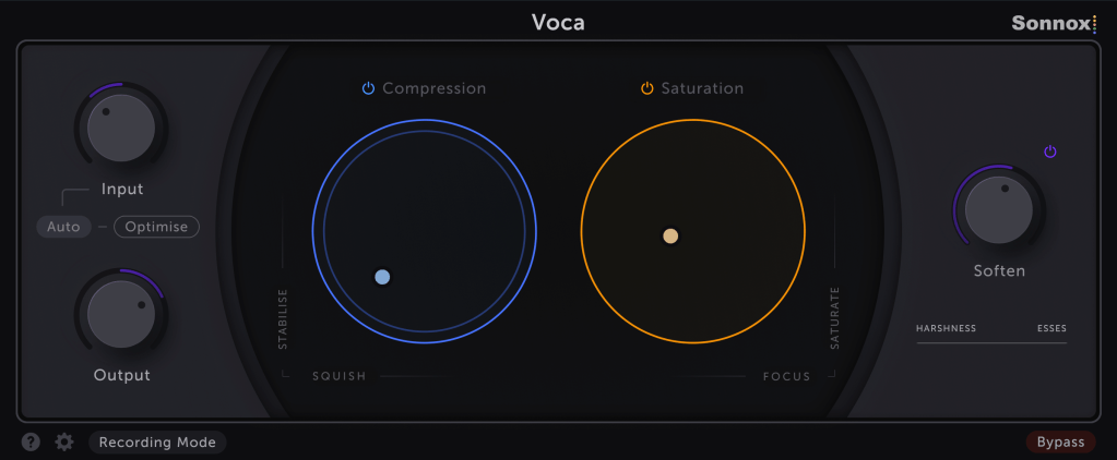 - Compression intensity and Brighten (high-shelving EQ) controls